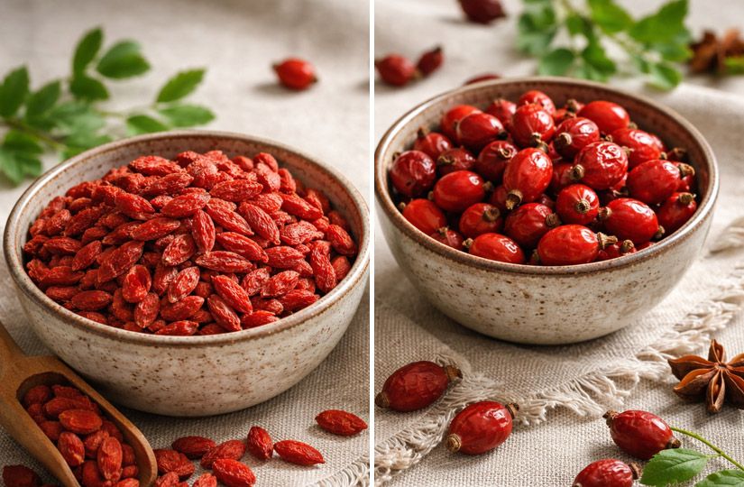Что готовить. Шиповник кисло-сладкий и терпкий, его заваривают как чай, добавляют в компоты, из него делают сироп. Годжи напоминают сладковатый изюм с легкой кислинкой, их едят как снек, добавляют в каши и смузи. Перед употреблением ягоды можно замочить в воде на 10–15 минут.