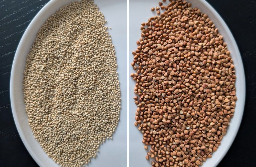 Гречка по аминокислотному профилю близка к киноа, хотя и немного уступает по общему количеству белка, зато она богата рутином, который укрепляет стенки сосудов, и хироинозитолом, снижающим уровень сахара в крови. Оба продукта имеют низкий гликемический индекс и надолго насыщают.