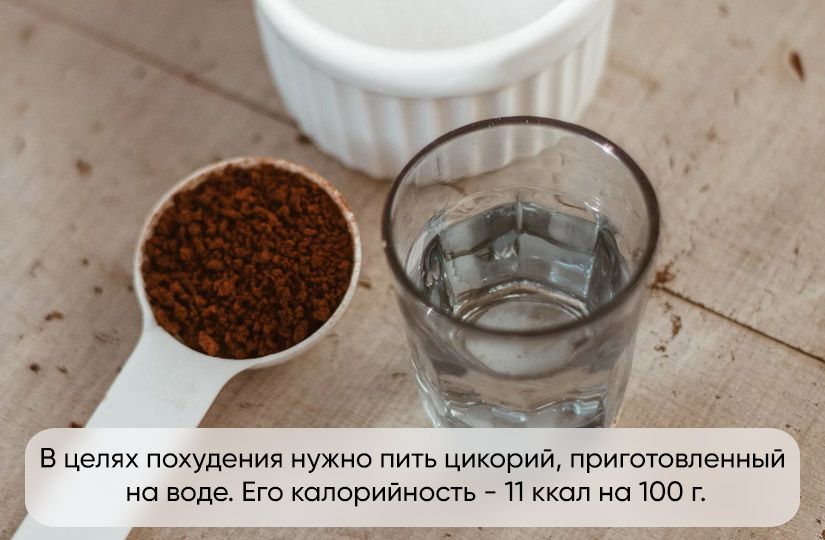 Важно помнить, что как напиток, способствующий похудению, можно пить только цикорий, растворенный или сваренный на воде. При добавлении молока калорийность напитка увеличивается с 11 ккал на 100 грамм продукта до 33 ккал.